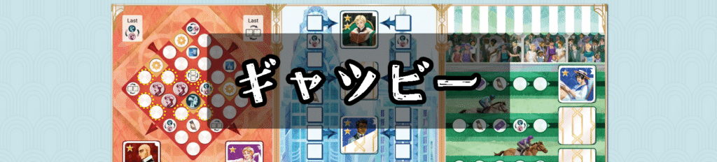 『ギャツビー』は、1920年代の社交界を舞台に、影響力を広げて勝利条件の達成を競う2人専用ゲームです。