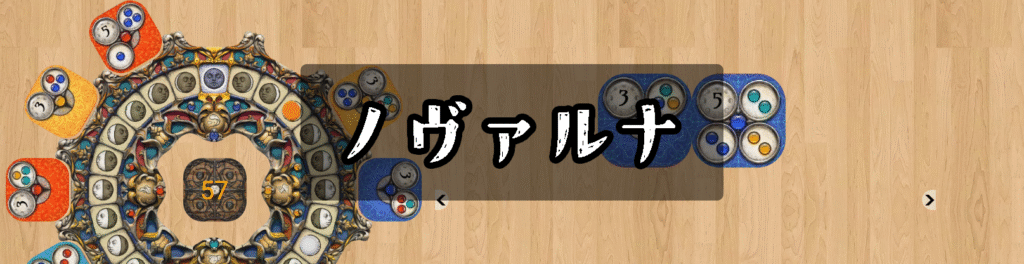 『ノヴァルナ』は、円形に並んだタイルから1枚を選び、自分の前に配置して課題を達成していくタイル配置ゲームです。