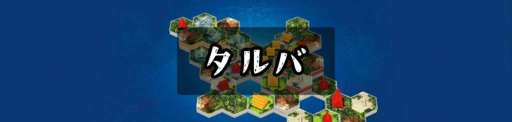 『タルバ』は、火山島に地形タイルを重ねて配置し、村や神殿、塔を建てていくタイル配置ゲームです。