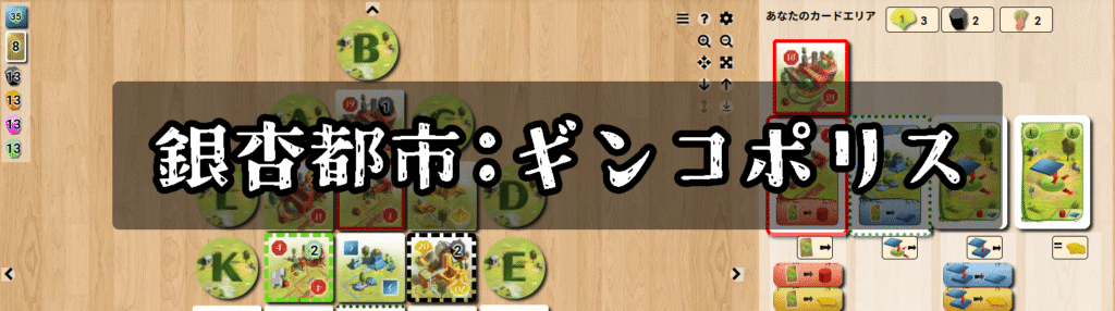 『銀杏都市:ギンコポリス』は、近未来都市を舞台に、建物タイルを配置して自分の都市を発展させていく戦略ゲームです。