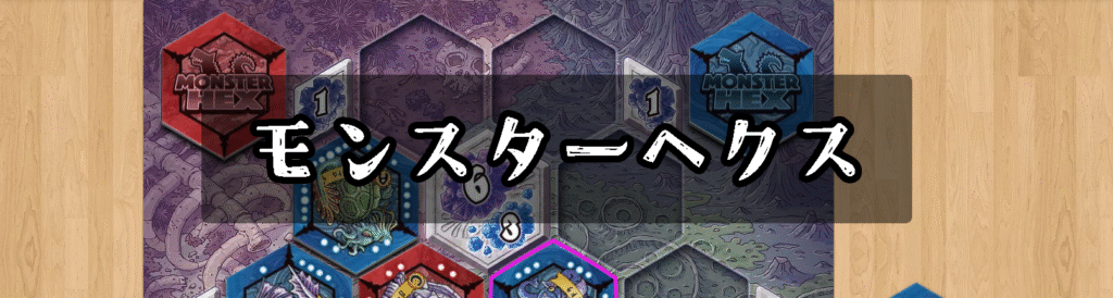 『モンスターヘクス』は、六角形の盤面にモンスタータイルを配置し、魔石エリアの支配を競う陣取りゲームです。
