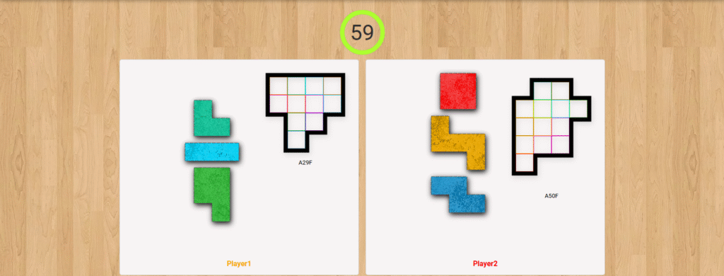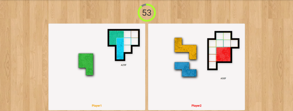 各プレイヤーは同時に、制限時間内に指定されたタイルを使って、パズルボード上の配置エリアを正確に埋めることを目指します。