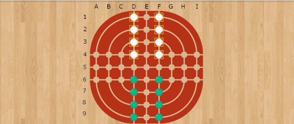 | ❸ | 初期配置 各プレイヤーは自分の玉をボード上の所定の位置に配置します。 |