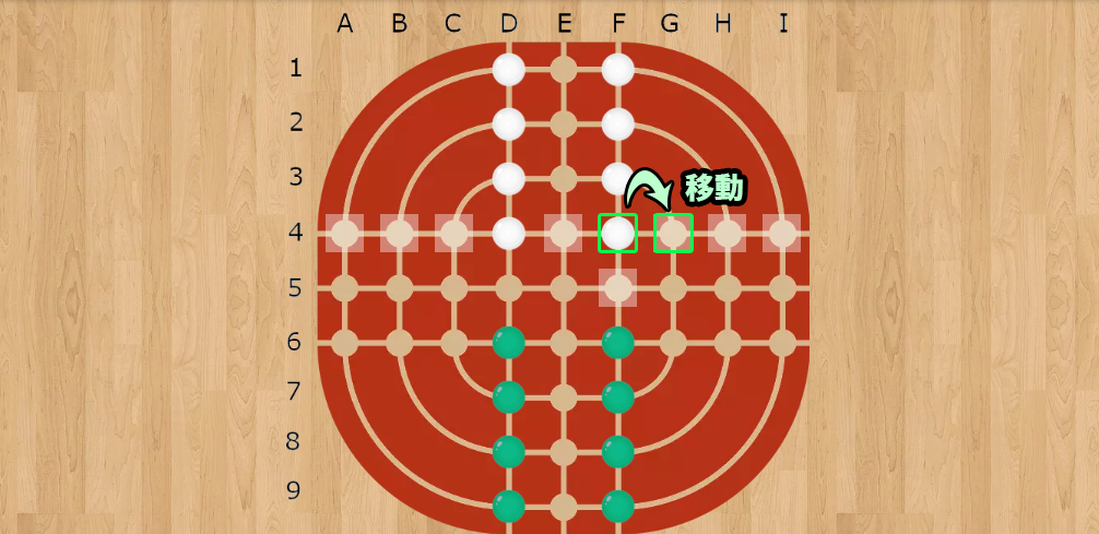 | ・ | 最低1スペース移動 玉は必ず1スペース以上動かす必要があります。 |