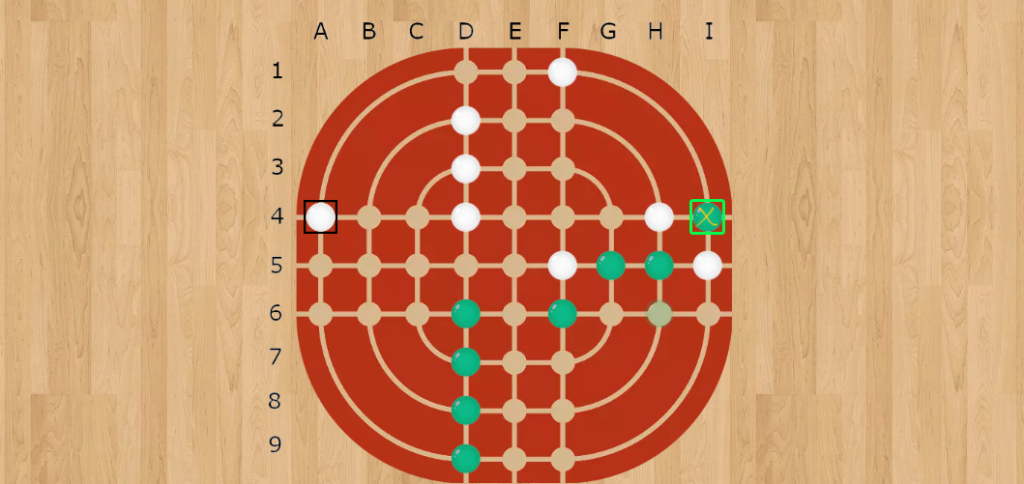 | ・ | 他の玉を越えることはできない 別の玉がいるスペースを通過したり、同じスペースに入ることはできません。 |
