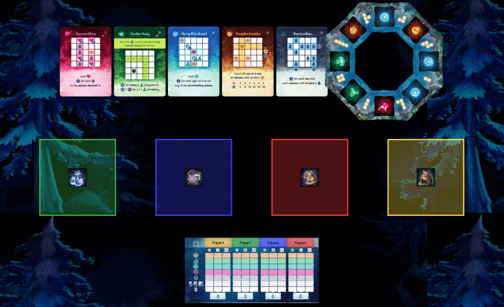 ゲームは全3ラウンド行われ、ラウンドごとに森のグリッドが拡張されていきます。