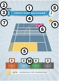- トップスピン():相手は次のストロークでネットに移動するために1枚のカードを捨てなければなりません。
