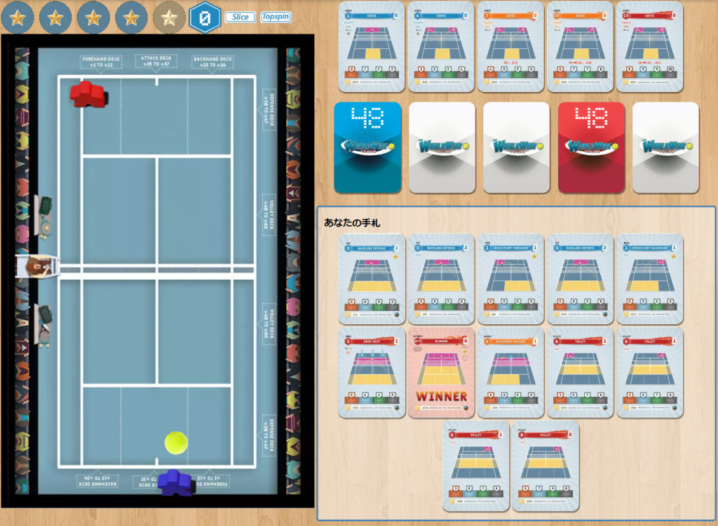 いくつかのカードにはトップスピンやスライスの効果があります。これらの効果を持つカードが成功裏にプレイされた場合、その効果は相手の次のターンに影響を与えます。